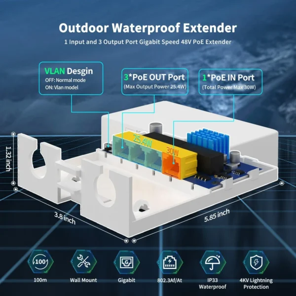 Giga POE Extender 1 in 3 Out